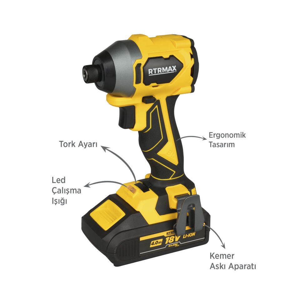 RTRMAX RTX3050 Şarjlı Torklu Vidalama Kömürsüz 230Nm 2x4 Ah Plus Çift Akü Hızlı Şarj X-Lion - Akü Dahil